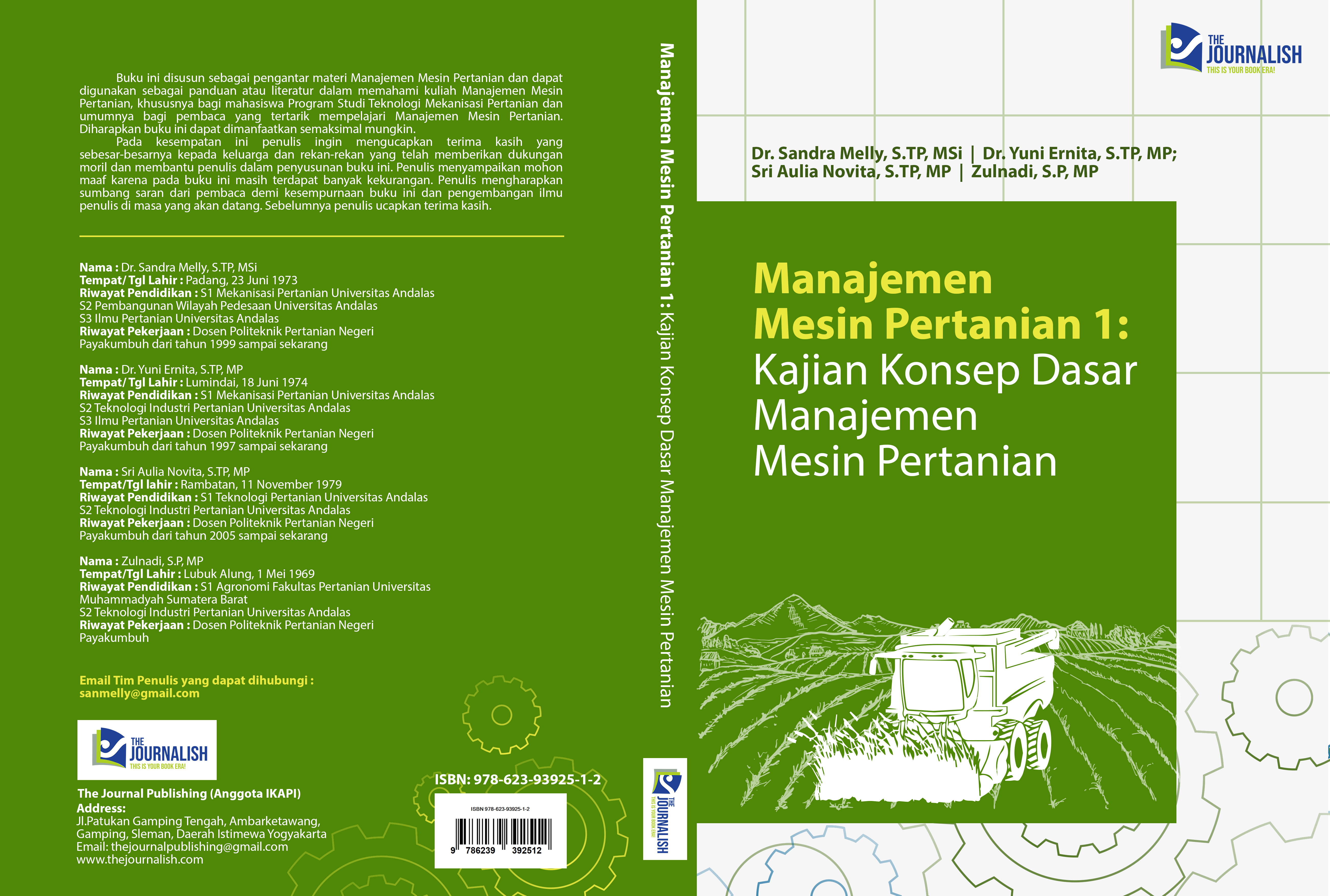 Puji syukur penulis panjatkan kehadirat Allah SWT, yang telah melimpahkan hidayah-Nya hingga penulis dapat menyelesaikan penulisan Buku Manajemen Mesin Pertanian 1 (Kajian Konsep Dasar Manajemen Mesin Pertanian). Buku ini disusun sebagai pengantar materi Manajemen Mesin Pertanian dan dapat digunakan sebagai panduan atau literatur dalam memahami kuliah Manajemen Mesin Pertanian, khususnya bagi mahasiswa Program Studi Teknologi Mekanisasi Pertanian dan umumnya bagiĀ pembaca yang tertarik mempelajari Manajemen Mesin Pertanian. Diharapkan buku ini dapat dimanfaatkan semaksimal mungkin. Pada kesempatan ini penulis ingin mengucapkan terima kasih yang sebesar-besarnya kepada keluarga dan rekan-rekan yang telah memberikan dukungan moril dan membantu penulis dalam penyusunan buku ini.
