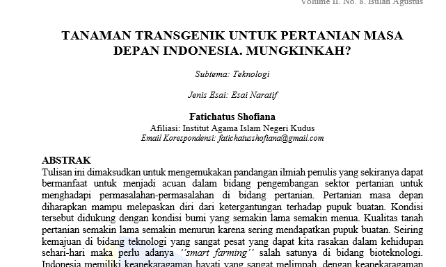 • TANAMAN TRANSGENIK UNTUK PERTANIAN MASA DEPAN INDONESIA. MUNGKINKAH?
